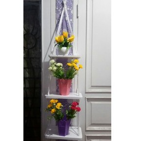 Name: Rak Dinding Gantung Pot Tanaman 3 Susun Kotak Putih Tali Putih Minimalis