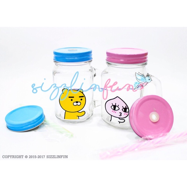 Gelas kaca Apeach & Ryan sdh Readyyy~ 🤗✨1 gelas kaca dpt 2 model tutup gelas + sedotan.