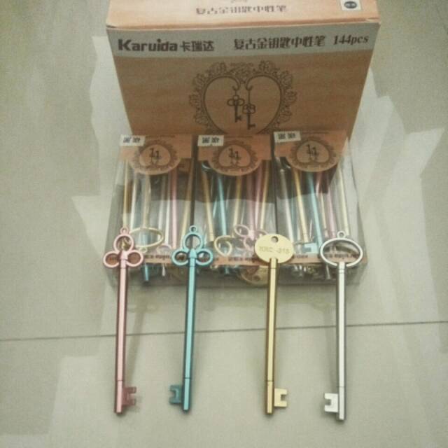 produk pen motif kunci yang disukai anak jaman now, bahan plastik yang tidak mudah patah, mata pen yang kecil 0.5, bikin menulis menjadi senang.