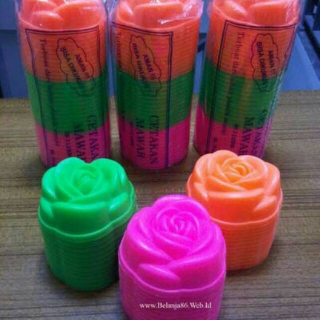 1 Pack Terdiri atas 3 lusin Cetakan berbentuk mawar dengan 3 Warna yang berbeda.