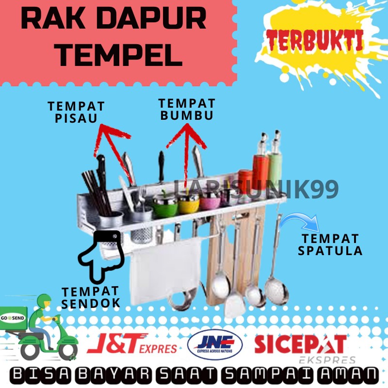 Name: Rak Dapur Tempat Penyimpanan Peralatan Dapur Tempel Dinding Serbaguna Bahan Aluminium