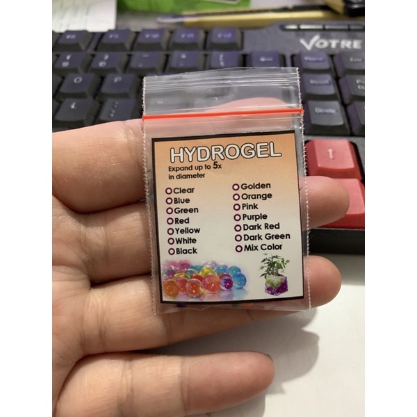 Rendam hidrogel 5 gram dalam 600ml air bersih dan Diamkan 4-5 jam hingga hidrogel mengembang sempurna,tiriskan dan hidrogel siap digunakan dan dikreasikan sesuai selera.