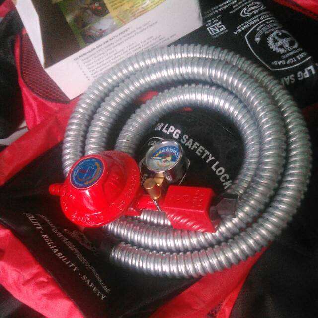 harga sudah satu paket regulator+selang spiral+1 karet seal+2 klem+kartu garansi dan asuransi,beserta brosur panduan