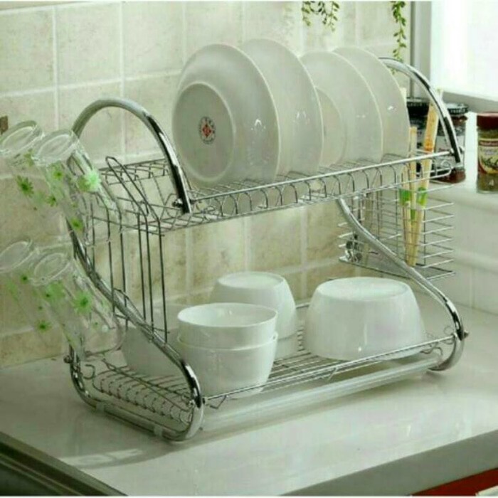 2-Tier Stainless Steel Chrome Dish Drainer adalah rak piring 2 tingkat yang dapat