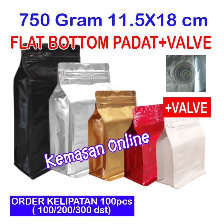 Name: Kemasan Kopi 200-250gr Flat Bottom Alumunium Foil Hitam/merah/emas/silver 750+zipper+valve