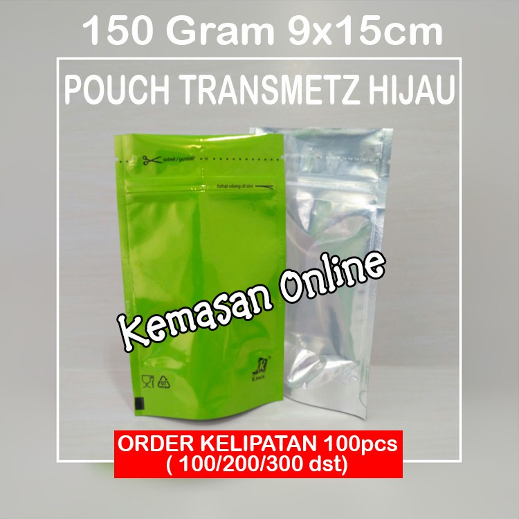 Name: Standing Pouch Alumunium Foil Kombinasi Transmetz Hijau 150gr+zipper