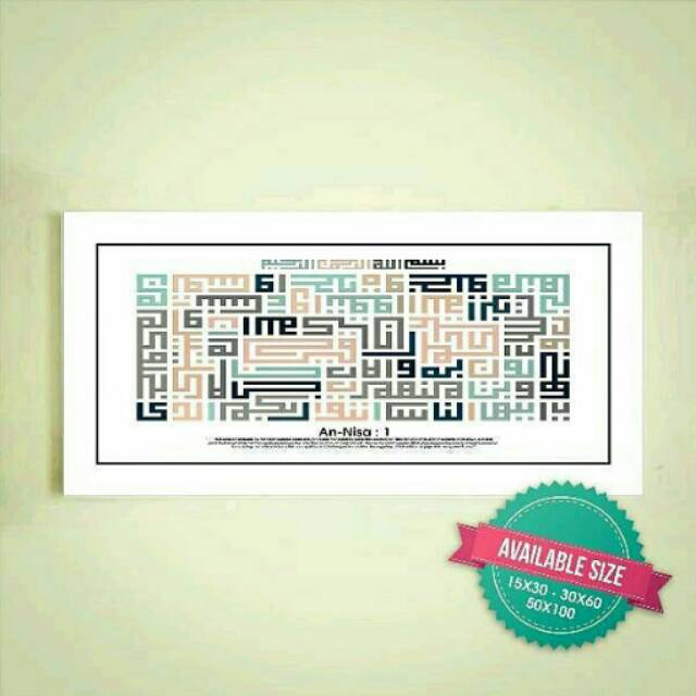 Pembeli yang memakai belanja di internet punya kesempatan buat memberikan feed back serta menyumbangkan pandangan mereka. Jendralstore kebanyakan mendorong pelanggan untuk memberikan siasat mereka dan menyiapkan formulir untuk hal itu. Mereka memakai gagasan konsumen sebagai jalan utk memajukan pelayanan mereka. Pembayaran on line untuk pemesanan Kaligrafi An Nisa Ayat 1 mudah dijalani. Toko menyiapkan sistem pembayaran yang cocok dan gampang pas. Mereka pula menunjukkan konsumen kalau data pribadi pembeli akan dirahasiakan.