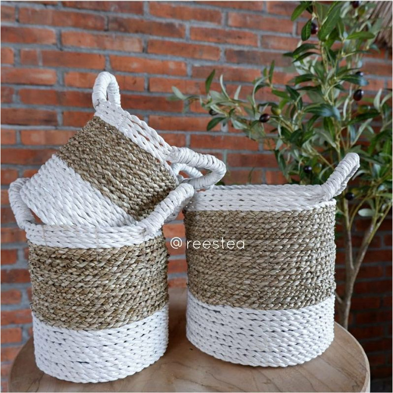 Termurah Perlengkapan di Kabupaten Kerinci Keranjang Meja Set Isi 3pc White Anyaman Cover Pot Tanaman/scandynavian dari Tidak Ada Merek Kab. Bantul