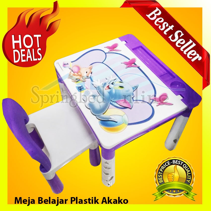 Meja Plastik (dengan tempat buku dan alat tulis) + kursi. Cocok untuk anak umur 2 - 10 tahun.