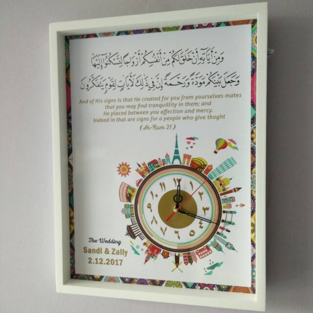 Name: Hiasan Jam Dinding Wooden Poster Kaligrafi Surat Ar-rum 21 Untuk Kado Wedding Uk 30x40